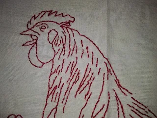 You might remember that I unearthed this chicken in January during the annual clean out? I made this during my 1990's Redwork frenzy.