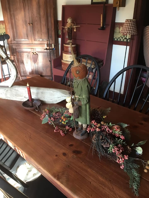 (Primitive Halloween decor by decorator friend, Joann Powell.)